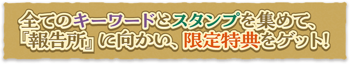 すべてのキーワードとスタンプを集めて「報告所」へ行くと特典がもらえます。