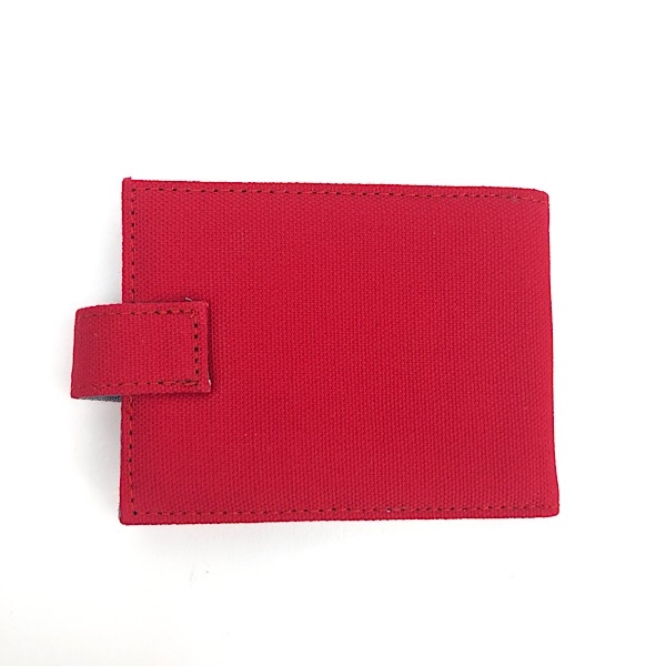 裏側はシンプルな無地です。大人っぽい赤ですよね~。サイズは105×80×15mm。
