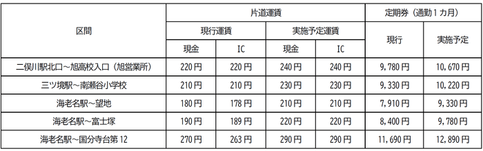 ・横浜新道を走行する系統に対しては、他に有料道路割増運賃(最大40円)を設定