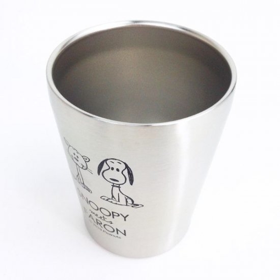 オフィスで浮かないおしゃれなスヌーピー♪一見普通のステンレスタンブラーですが、市販のカップがすっぽり入るサイズに作られているんです。