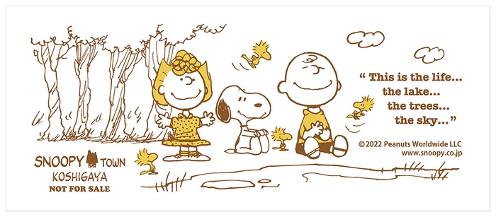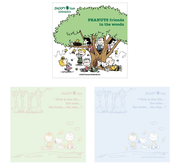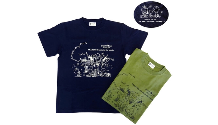 また越谷レイクタウン店限定オリジナル商品のテーマは「PEANUTS friends in the woods」 。PEANUTSの仲間たちが、大きな木の下で楽しく、くつろぐシーンをデザインしました。