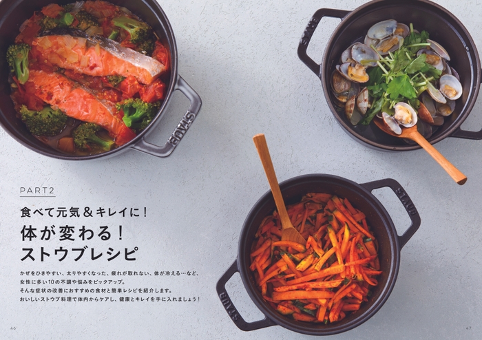 「からだ整うストウブごはん」は、医学監修のもと免疫アップやダイエットといった体にいい情報を盛り込んだストウブ鍋を使用するレシピ本です。カロリーカットや栄養補給を実現しつつさまざまな不調を予防・改善して体調を整えるごはんレシピを紹介します。