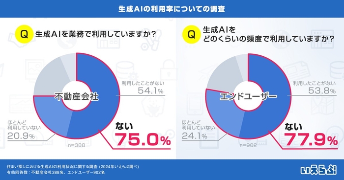 1.不動産会社とエンドユーザーの生成AI利用率、75%以上が利用していないと回答