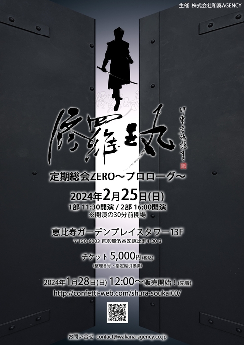 株式会社和奏AGENCY主催、『修羅王丸カレンダー発売記念トークイベント』が2024年2月24日(土)、『修羅王丸 定期総会ZERO〜プロローグ〜』が年2月25日(日)に恵比寿ガーデンプレイスタワー13F(東京都渋谷区恵比寿4-20-3)にて開催されます。