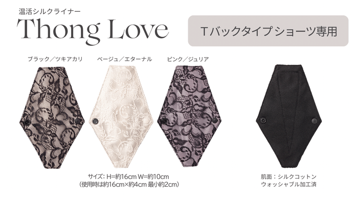 Tバックタイプのショーツ専用。ショーツラインにも響かせません。「そんなの欲しかった!」にお応えすべく、センター部分はしっかりと。こすれても肌に負担のないシルクならでは!安心とぬくもりで快適に。