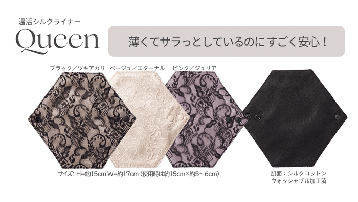 新商品の「温活シルクライナー」シリーズは、肌に触れる面に群馬県産のシルクを織り込んだオリジナル生地を使用し、敏感なゾーンにやさしくフィット。蒸れ・乾燥・かぶれといった日常的な悩みに寄り添いながら、使うたびに心が整う感覚をもたらします。