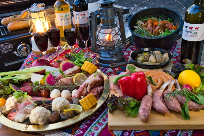 ダッチオーブンで仕上げるごはん、パエリア、アクアパッツァなど焚火を使った体験型の料理もお楽しみいただけます。