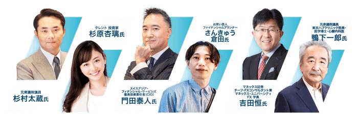 杉村太蔵氏、杉原杏璃氏、鴨下一郎氏など、メディアでも注目されている講師が登壇し、資産防衛や資産運用などさまざまなテーマで講演します。