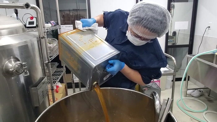 株式会社金市商店(本社:京都市中京区三条通富小路西入中之町21)が2024年3月にオープンした新ブランド「京都蜂蜜酒醸造所」にて、蜂蜜と水を加え発酵させて造る醸造酒「蜂蜜酒(ミード)」の初回醸造を開始いたしました。蜂蜜屋だからこそのこだわりで、これが「蜂蜜から造ったお酒」だと自信をもって言える王道ミードを目指す『TheMEAD』のファーストロットです。蜂蜜について知りつくしたハニーハンター市川拓三郎が厳選した国産百花蜜を原料とし、香りと甘みのバランスの良い蜂蜜らしさを残した味わいに挑みます。『TheMEAD』はクラウドファンディングにて、目標の1051%の支援をいただいたプロジェクトのリターン品で、支援者への発送や京都蜂蜜酒醸造所でのミードイベントなどの参加者に提供予定。