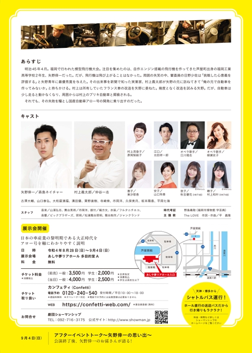 現存する最古の国産車を完成させた青年の半生を描く音楽劇 『大正くるま浪漫~矢野倖一の挑戦~』福岡県あしや夢リアホールで上演決定 カンフェティでチケット発売