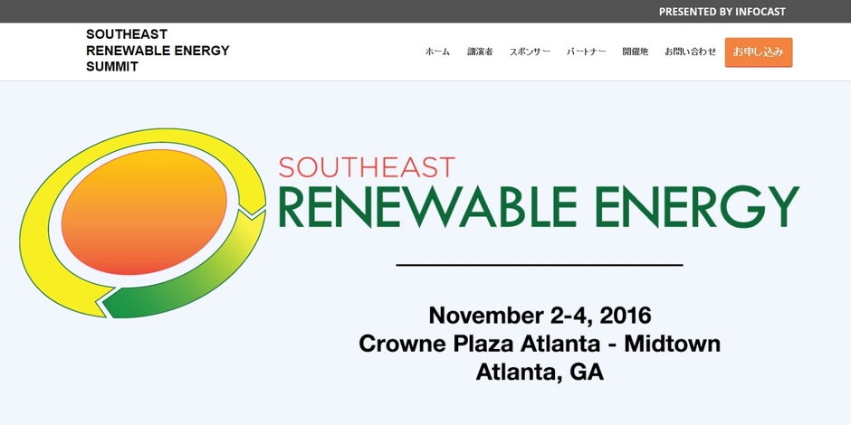 会議:「Southeast Renewable Energy Summit-米国南東部の再生可能エネルギー2016年会議」
