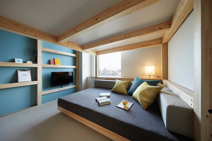 恋人や家族、友人同士などで、お酒や食事を楽しみながら会話の時間を持つのはとても楽しいもの。一方で多くの人が集まる場所にはまだちょっと行きづらいという声も。そんな時、ホテルの客室でなら、同行者以外との3密回避がすんなり対策できます。OMO5東京大塚の客室「やぐらルーム」は、ちいさいけれど寛ぎ空間にこだわったコンセプトルームです。やぐら階下の大きなソファは、まるでリビングのように使うことができます。また、「今日はじっくり飲むぞ!」と意気込みながらも、残念ながら早く脱落した方は、やぐら階上のベッドに潜り込んで早めの「おやすみなさい」も叶います。