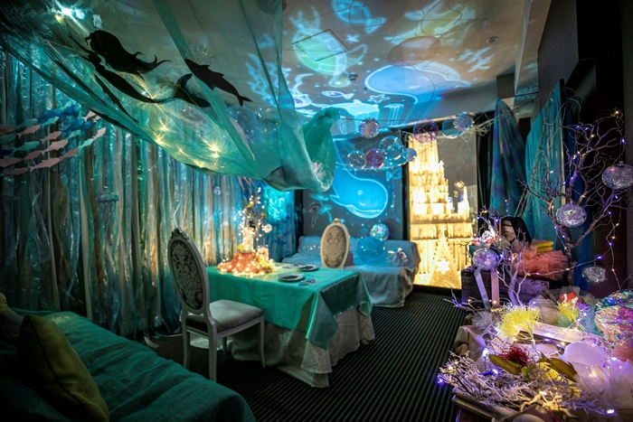 童話【人魚姫】の世界観にひたれるオリジナルデコレーションルームは、マーメイドが過ごした海の世界を表現。