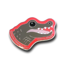 毎年、5月5日の開園記念日と新年に合わせて2回、園内で飼育している動物をモチーフに、職員の方がデザインしたオリジナルピンバッチを製作しているという埼玉県東松山市の埼玉県こども動物自然公園様。辰年の今年、龍にちなんで、古にそのモデルとなったワニをモチーフに、イベント時の配布と販売を目的に製作なさったのが、ヨウスコウワニピンバッチです。