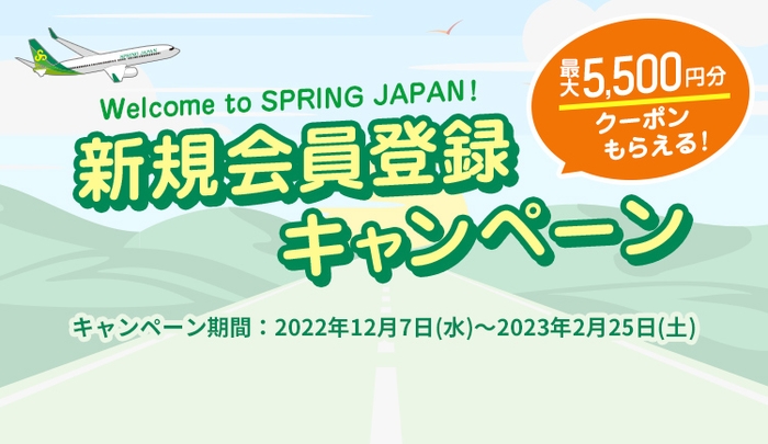 また、増便を記念し「片道1,000円~!クリスマスセール!」および最大5,500円分のクーポンをもれなくプレゼントする「Welcome to SPRING JAPAN!新規会員登録キャンペーン」を実施いたします。