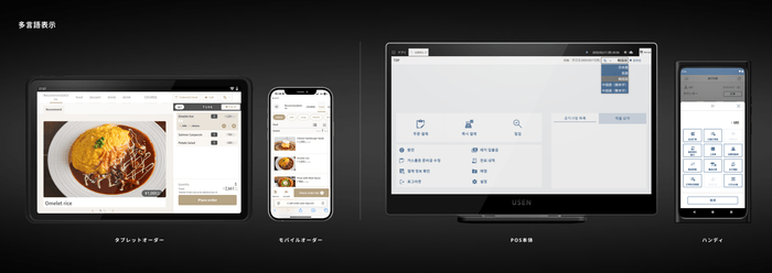 ・ 注文受付メニューの多言語に対応したハンディ端末に加え、会計や後続処理を行うPOS本体の操作画面も多言語