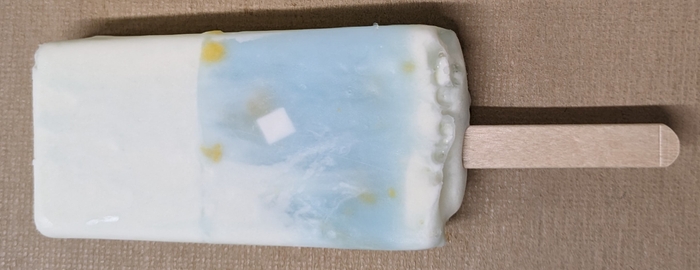 ★ハロハロをアイスバーに仕立てました。ハロハロラムネのソフトクリームとかき氷部分を一緒に食べたときの味わいです。