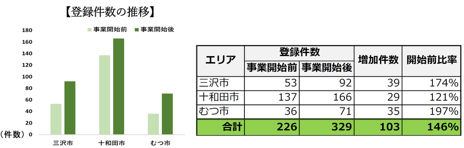 具体的には、県内の3地域(三沢市、十和田市、むつ市)を重点エリアとし、観光事業者等へのMEO対策セミナーの実施や、戸別訪問を計331件以上実施し、Googleビジネスプロフィールの新規オーナー登録件数が業務実施前と比較し、約146%となりました。
