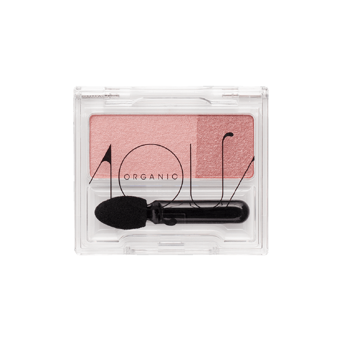植物&フルーツオイル配合のしっとりやわらかいパウダーアイシャドー。くすみを飛ばすミルキーピンクと洗練されたダスティピンクで目元に控えめな甘さを演出。
