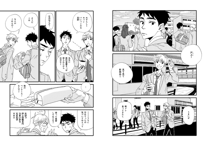 家事もこなす真面目で読書家な戸上と、そそっかしいけど明るくて愛されキャラな箕野。クラスは違っても、教科書を借りたり昼休みや放課後も一緒に過ごしたりする仲。