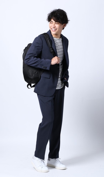 パンツは、スッキリとしたシルエットのノータックタイプと、腰回りにゆとりのあるシルエットのドローコードタイプの2種類を用意しています。パンツに合わせてインナーやシューズを変えることで、様々な着こなしを楽しむことができます。ジャケットはどちらのパンツにもコーディネートがしやすいように、ゆとりあるシルエットながら、オーバーサイズすぎないデザインになるように工夫を施しました。