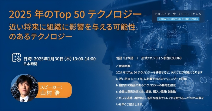 フロスト&サリバンは、「2025 年のTop 50 テクノロジー: 近い将来に組織に影響を与える可能性のあるテクノロジー」と題し、オンラインセミナーを開催致します | NEWSCAST
