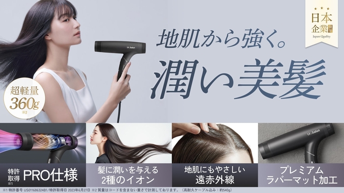 「誰もが毎日使いたくなる、使いやすさと高性能を両立したドライヤーを」という想いから誕生した既存モデルは、多くの方にご好評をいただきました。今回、より洗練された印象とユニセックスな使いやすさを追求し、どんなライフスタイルにもなじむ 黒色モデル を新たに開発。無駄をそぎ落としたシンプルな操作性やコード断線防止カバー、オートクリーン機能、高耐久モーターを搭載し、長く安心して使える一台に仕上げました。