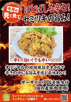 2024年は4月の時点で夏日を観測するなど、今年も猛暑になる予感。暑いと食欲も落ちてきますが、そんな時におすすめしたいのが首都圏ライフの夏季限定「ザーサイ入り!旨辛豚味付(国内産豚肉使用)」。あと引く辛さと旨みがやみつきになる“韓国風旨辛オイル”を使用しており、食べた瞬間から口の中でほとばしる辛さがたまりません!フライパンで焼くだけで簡単に作れるところも嬉しいポイントです。