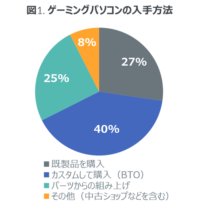 ・ゲーミングパソコンの入手方法は「カスタムして購入(BTO)」が4割と最も多かった。