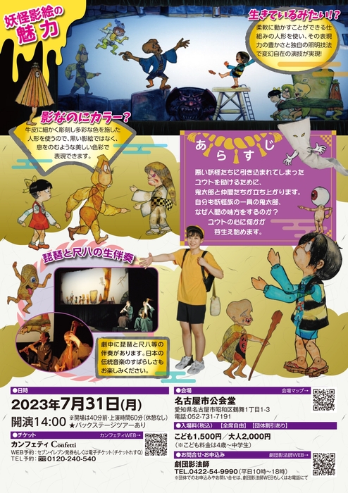 株式会社劇団影法師 妖怪影絵劇『ゲゲゲの鬼太郎』【名古屋公演】が2023年7月31日 (月)に名古屋市公会堂 大ホール(愛知県名古屋市昭和区鶴舞1-1-3)にて上演されます。