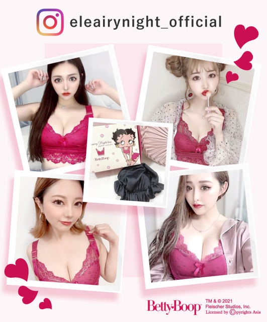 「大好きなベティーちゃんキスマーク柄、カワイイ~!」「ベティーちゃん柄のビビットピンクで即買いした!」と大好評!ベティーちゃんメイクをしたり、特典のナイトキャップをかぶってベティーちゃんになりきって投稿してくれたりと、ベティーちゃんコラボのエレアリーナイトブラを着用した写真がたくさんアップされました♡