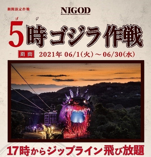 友達や家族を連れて「5時ゴジラ作戦」に参加し、ゴジラの変化を解明するためにジップラインで調査にでよう!