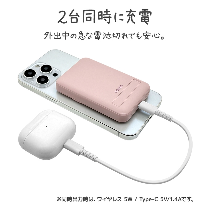 ワイヤレス充電とType-Cポート接続で、2台同時に充電する事が可能です。