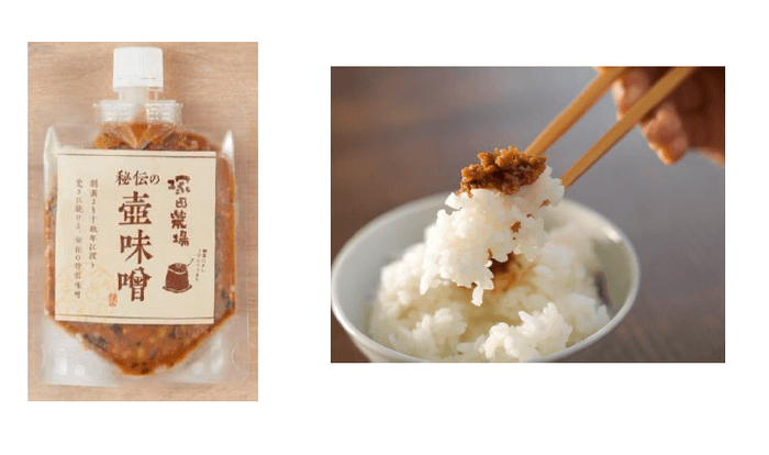 宮崎県の麦味噌をベースに、鹿児島県の桜島大根や高菜、カシューナッツなどがブレンドされたオリジナルの特製味噌です。