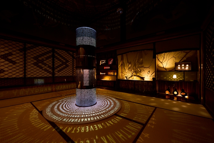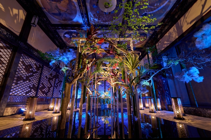 『百鬼夜行』をストーリーテーマに、部屋を進むごとに現世から異界へと旅をするかのような展示演出をはじめ、絢爛豪華な独自の様式美に溢れる文化財空間にさらなる『色』による表現が加わり、美しくも妖しい世界へ誘います。