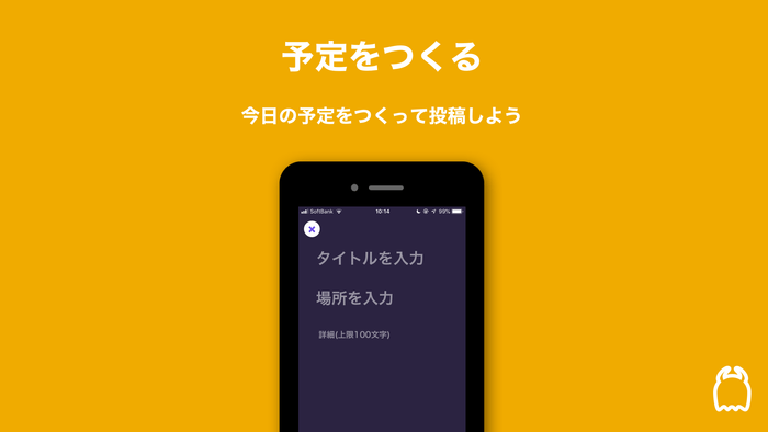 moonsideでは「予定のタイトル」「場所」「時間」を指定するだけで募集したい予定を投稿することができます。
