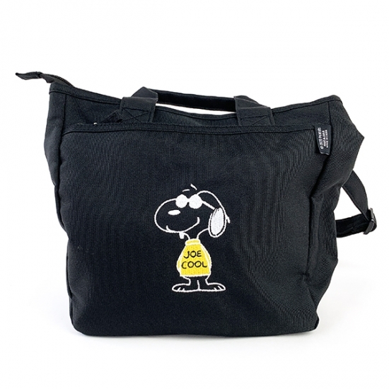 寝そべりデザインのスヌーピーがキュートな、ボトルインショルダーバッグが登場です。クールでベーシックなブラックのボディで、帆布素材のオシャレなバッグ♪持ち手とショルダーベルトが付いているので、2EAYで使用できちゃいます。