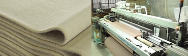 ・この糸を紡織機で織り上げて反物にし、表面を起毛させ毛先を揃えます。
