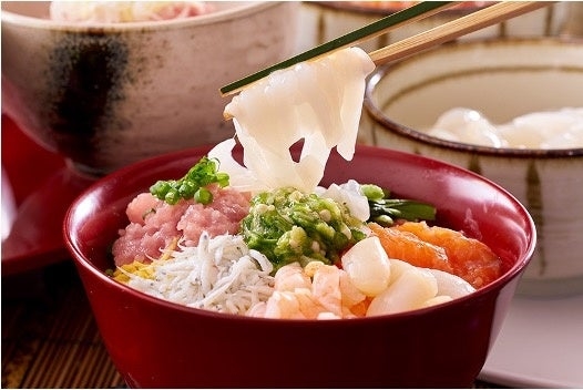 そしてこの春、あいづにも朝食に大江戸温泉物語名物「のっけ丼」が登場します。海鮮やねばねば食材など、ご飯と相性の良い約10種類の具材をご飯の上にお好きなだけお好きなように盛り付けて作る、朝からテンションの上がる人気メニューです。