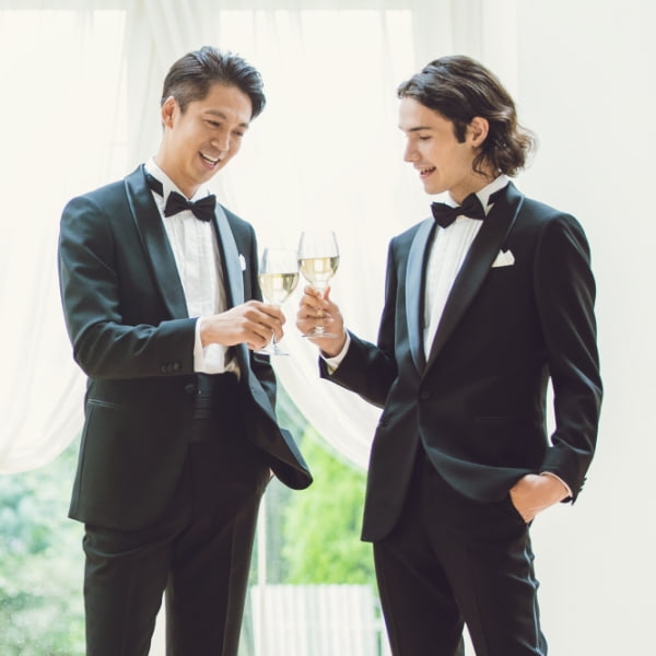 タキシードやセレモニースーツなど6種類、ネット完結で使用後はそのまま返却の手軽さアピール
