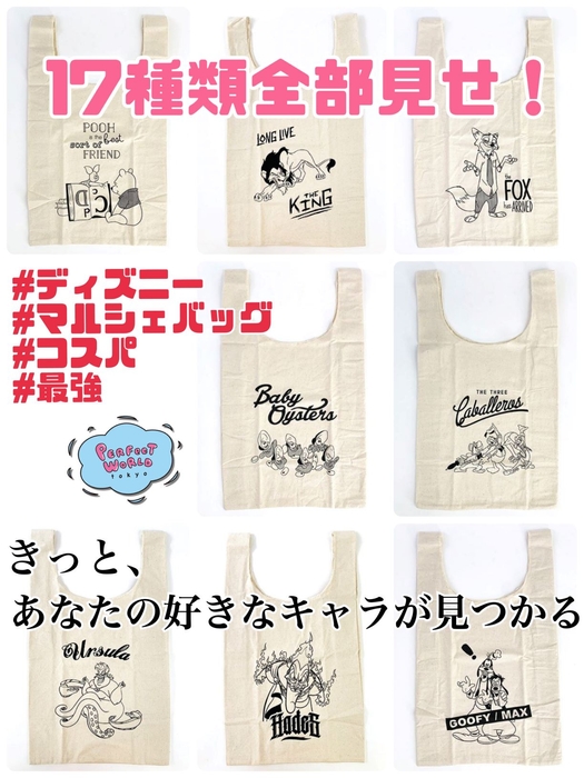 エコバッグに見えないオシャレなマルシェバッグ。こちらのマルシェバッグ660円(税込)とコスパも最強なんです♪ディズニーデザインの麻混のナチュラル生地を使った万能バッグのラインナップはなんと17種類!今回はそのラインナップを全部見せしちゃいます♡