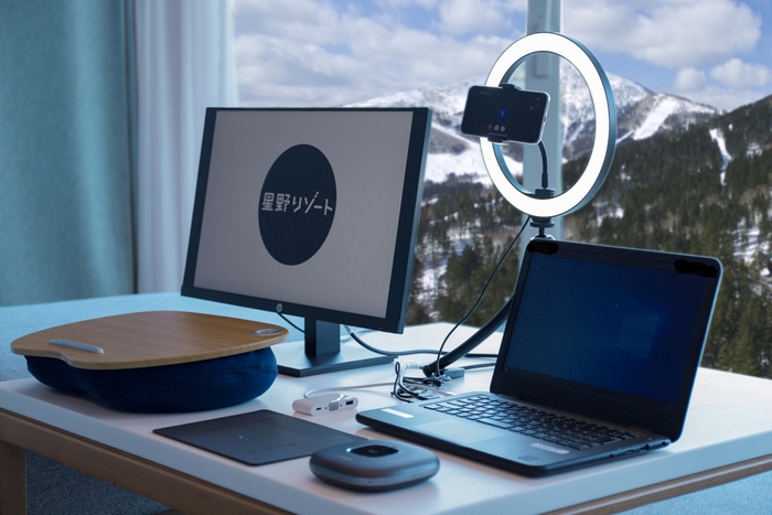 サウナに入った後は、身体のコンディションがととのえられた状態で仕事に臨めるため、良いパフォーマンスが期待できます。当リゾート内には仕事ができる場所が複数あり、中でもおすすめなのが24時間自由に利用できる「絶景オフィス」です。リゾナーレトマムの30階に位置し、絶景を眺めながら仕事ができます。ここには、Wi-Fiや予約制の個室など仕事に集中できる設備が揃っているのが特徴です。そのため、作業はもちろんのこと、オンライン会議も周りを気にすることなく行えます。また、オンライン会議用のマイクなどがセットになった「パーフェクトワーケーションセット」を当プラン利用者の客室に完備しています。持ち運びができるので、客室だけでなく、必要に応じて絶景オフィスでも使用可能です。