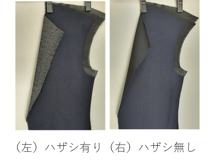 ※1:ハザシとは:表地と芯地をを馴染ませる八の字に縫っていく縫製方法
