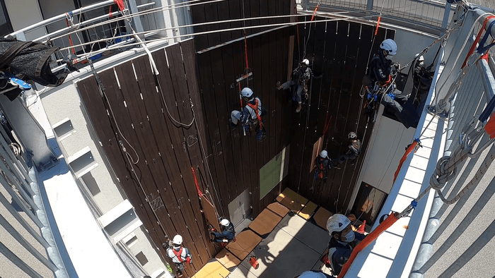 キャリア6年にしてこれまで1000以上の高所作業をこなしてきた島田さんですが、今回のように足場がまったくない場所での作業は「とくに難しい」と話します。