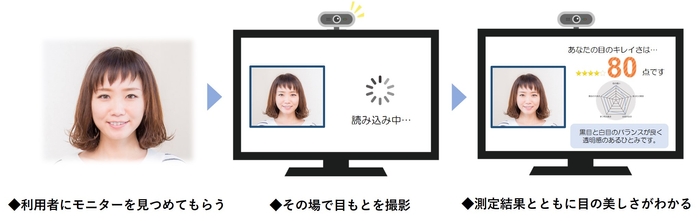 今回開発するアプリケーションは、独自のシステムを使い目もとのキレイさを判定できる、近未来を見据えた目の美容系アプリケーションとなっております。本アプリケーションのご利用によって、お客様の目のキレイさを客観的に評価し、顔の印象の8割を占める目のキレイさをUPするためにはどこがポイントなのかヒントを示します。