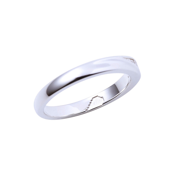シンプルなストレートリングの内側には樺倉のイメージカラーストーンをセット。
