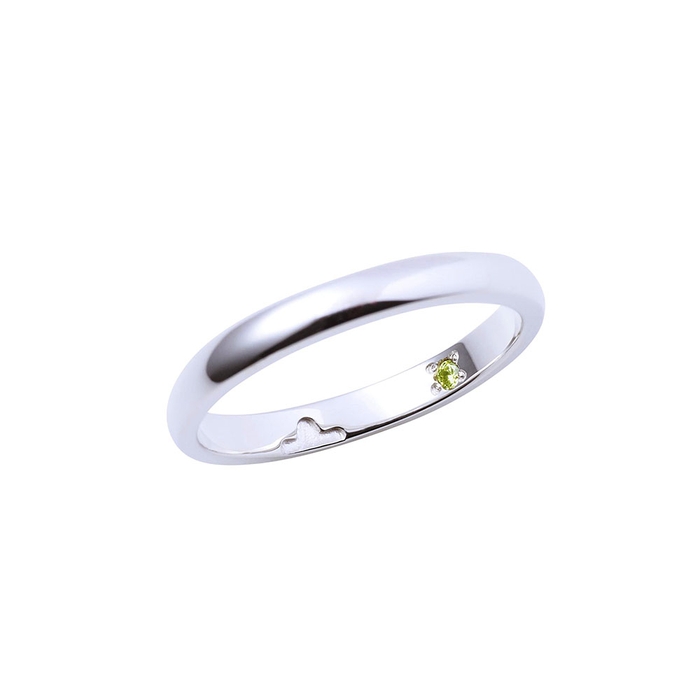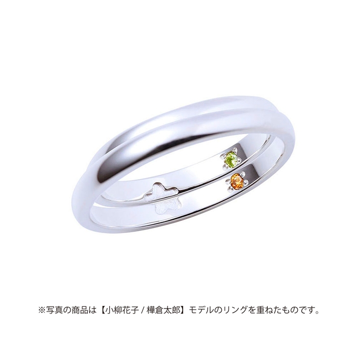 シンプルなストレートリングの内側には花子のイメージカラーストーンをセット。