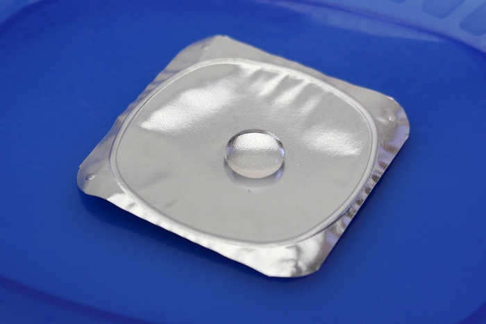 「ビヒダスヨーグルト(4個パック)」のフタは、裏側にヨーグルトがつかないように工夫されている。このフタの上にいろいろな液体をのせて観察すると、水のふしぎな性質が見えてくる!