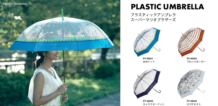 今回のレイングッズは憂鬱な雨の日にも、猛暑の真夏日にも、時間を忘れて熱中したゲームのキャラクター、マリオと一緒にお出かけを楽しんでいただける傘が揃っています。