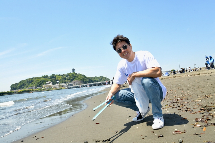 片瀬東浜海岸で「ファイト イッパーツ!ごみ拾い」を実施 ~ケイン・コスギさん、廣瀬俊朗さんが参加!~